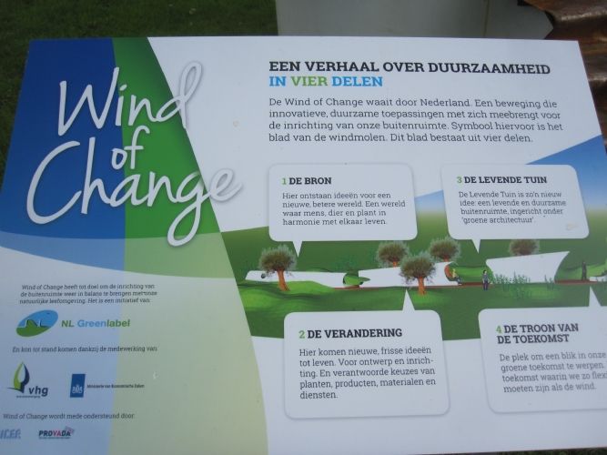 "Wind of Change" verbeeldt in vier stadia de levende tuin, als symbool voor meer biodiversiteit en balans in de buitenruimte. Samen met VHG wordt het voortouw genomen om de bewustwording binnen en buiten de groene branche te vergroten, dat er een andere wind moet gaan waaien om de sector een duurzame toekomst te geven. De komende maanden zal "Wind of Change" op diverse andere locaties in het land het verhaal van de verandering verbeelden.