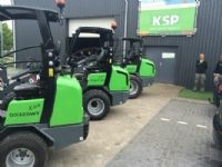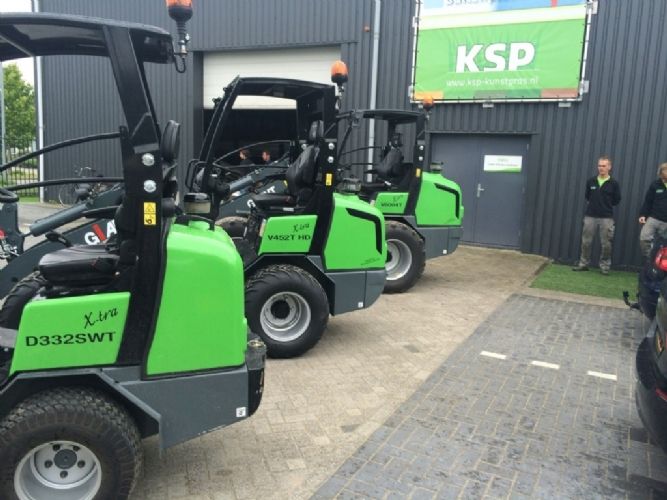 KSP Kunstgras beschikt sinds een aantal weken ook een drietal nieuwe shovels in de bedrijfskleuren. Voor elk type werkzaamheden hebben ze op dit moment een shovel.