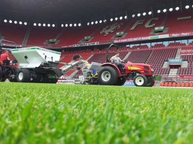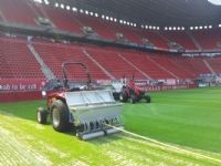 Met eigen ogen hebben we het resultaat van deze bewerking kunnen aanschouwen. Er ligt een perfecte grasmat in de Grolsch Veste. De Weerd is dan ook dik tevreden: 'Er is veertig kuub zand met voeding in de toplaag aangebracht. De beworteling heeft zich inmiddels uitstekend ontwikkeld. Er was overvloedige regenval, maar het waterafvoer vanuit de toplaag naar beneden was geen probleem. Tijdens de bewerking was de machine afgesteld tot aan de ondergrondse veldverwarming. En ook deze heeft de behandeling door de Top Changer schadevrij doorstaan', aldus een zeer tevreden groundsman. 'Ik kan deze behandeling dan ook bij iedere club ten zeerste aanbevelen.'