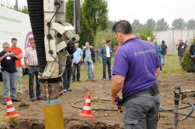 Na de presentaties was het in middag tijd voor een uitgebreide demonstratie van alle de technieken die Kuppen zelf of via de zusterbedrijven Nationale Bomenbank, TGS, Cambium en Terra Nostra in huis heeft.