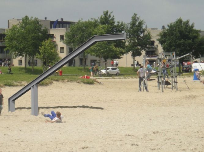 Met dit toestel wil OBB juist ontwerpers van speeltoestellen en –omgevingen uitdagen om de grenzen van de mogelijkheden op te zoeken: ‘Als je de normen kent, kun je ze gebruiken in plaats van dat ze jou beperken.’ Niet boven de wet, maar boven de materie staan. En daarnaast roept Johan van harte de kopers van speeltoestellen op om te erkennen dat leren omgaan met gevaar niet lukt zonder de aanwezigheid van risico’s. De Durf-Al is te zien en te beklimmen tijdens de Dag van de Openbare ruimte op 8 en 9 oktober in Houten.