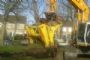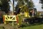Verplantmachine gebruikt bij verplaatsen bomen in Stiens
