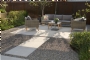Douchescherm van Schellevis-tegels als blikvanger in natuurlijke wellnesstuin